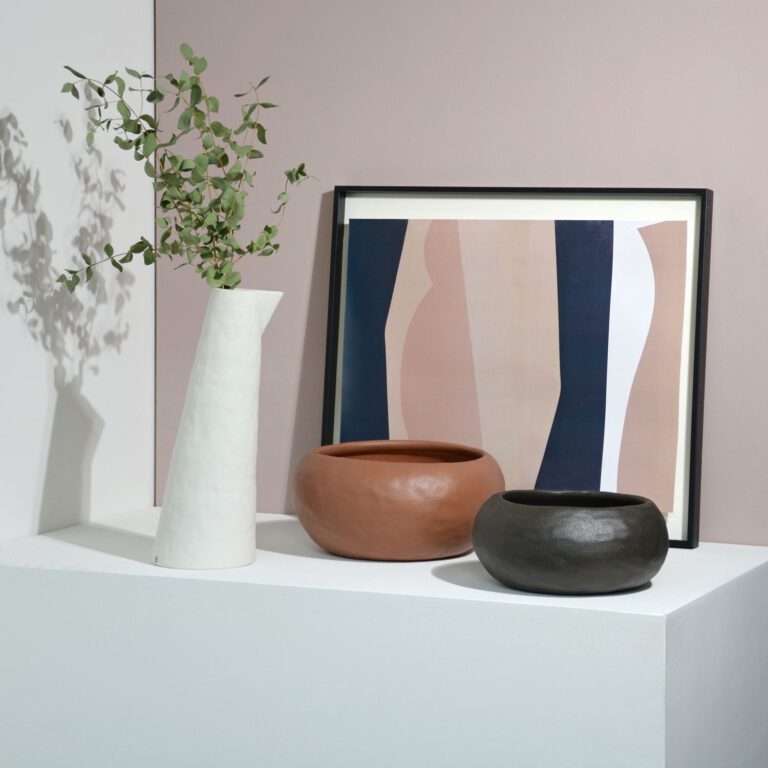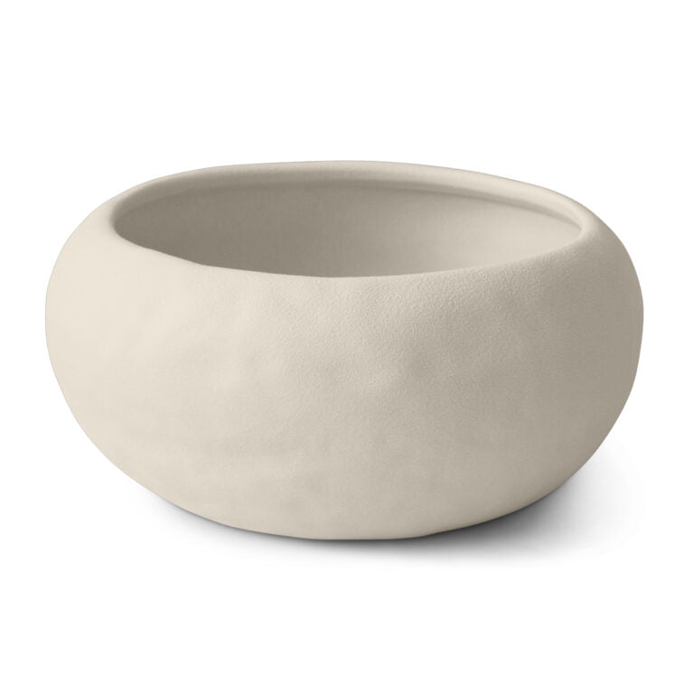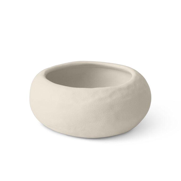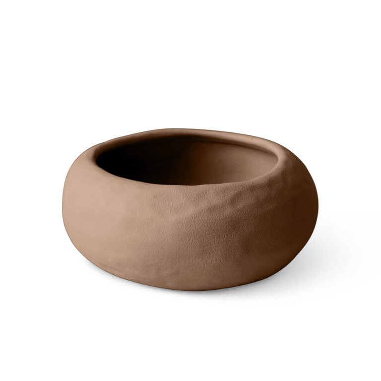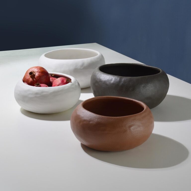 Ciotole dalle forme organiche levigate caratterizzate da una superficie irregolare.