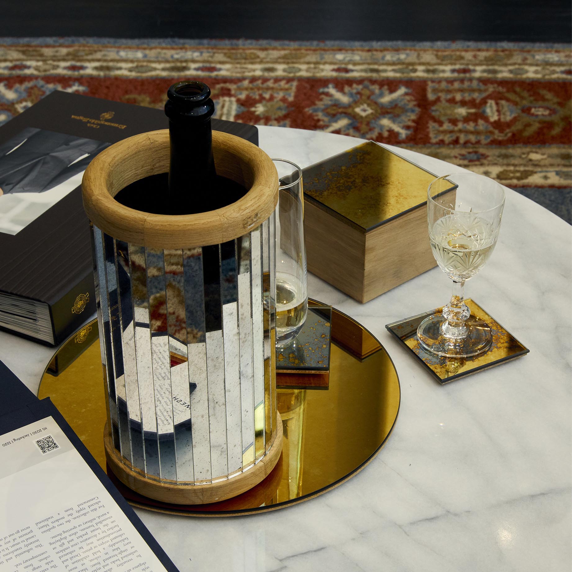 Accessori casa portabottiglie con mosaico di specchi artigianale su tavola apparecchiata