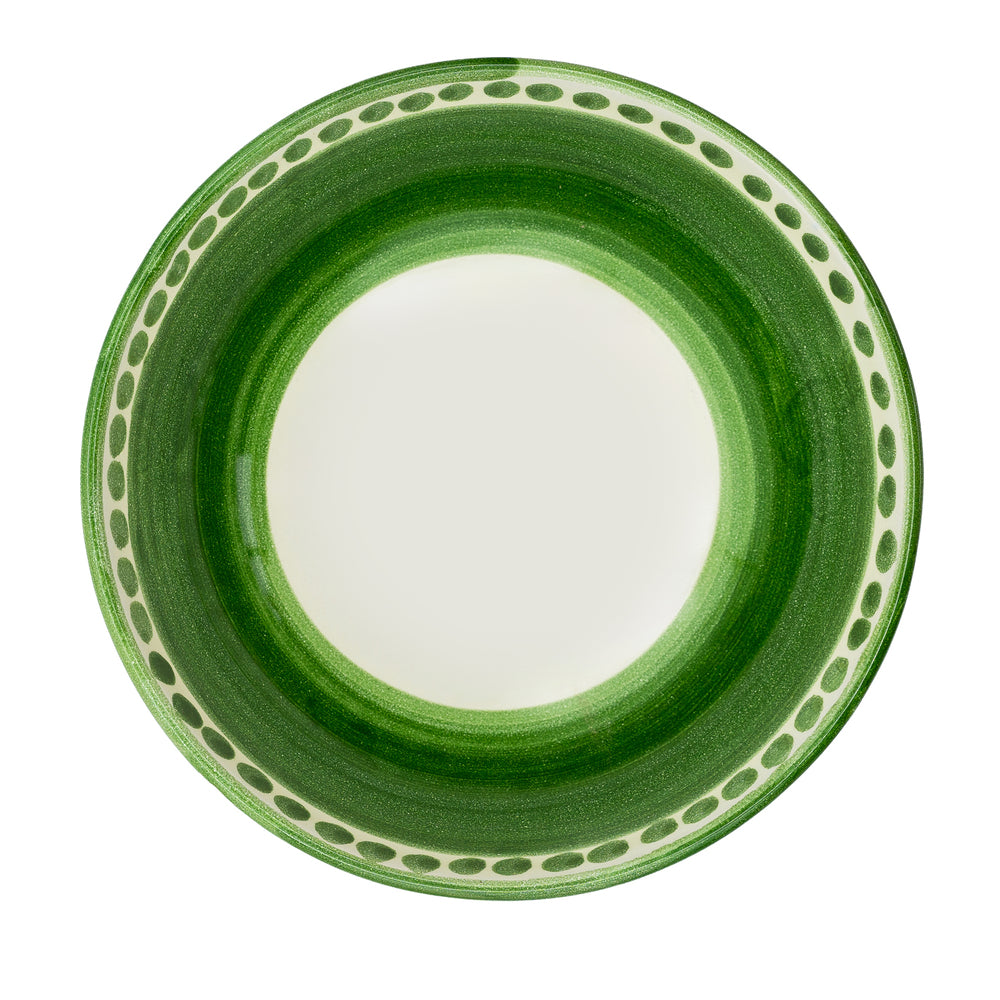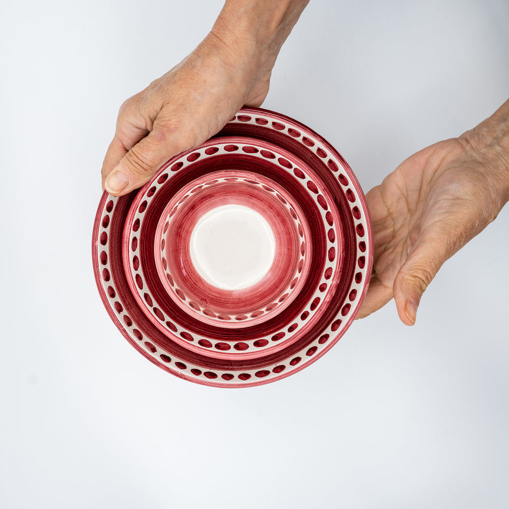 La ceramica offre consistenza e solidità, rendendo i piatti piacevoli al tatto e resistenti a un uso frequente. La decorazione manuale introduce lievi variazioni tra i pezzi, testimoniando l’intervento diretto dell’artigiano e garantendo unicità a ogni elemento.