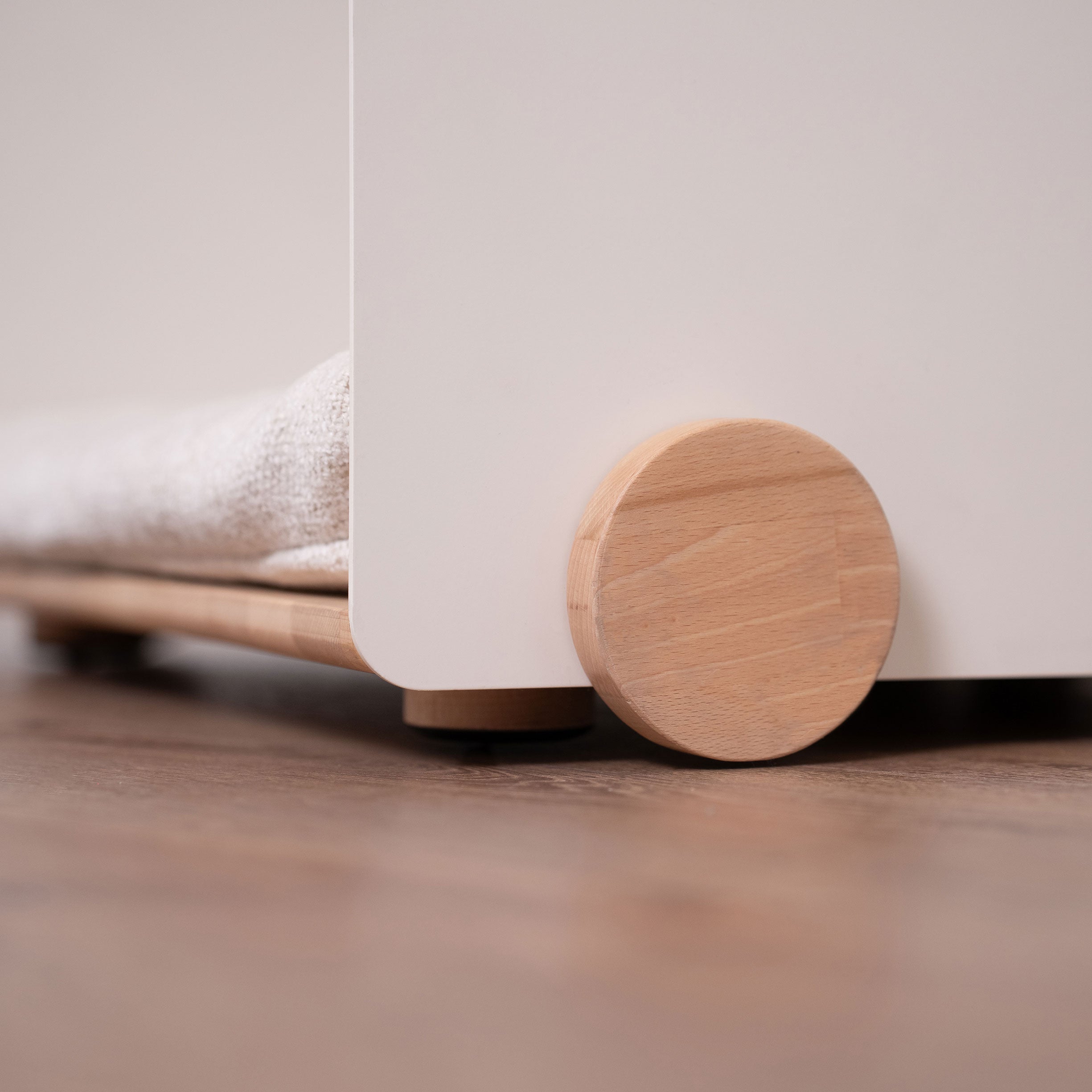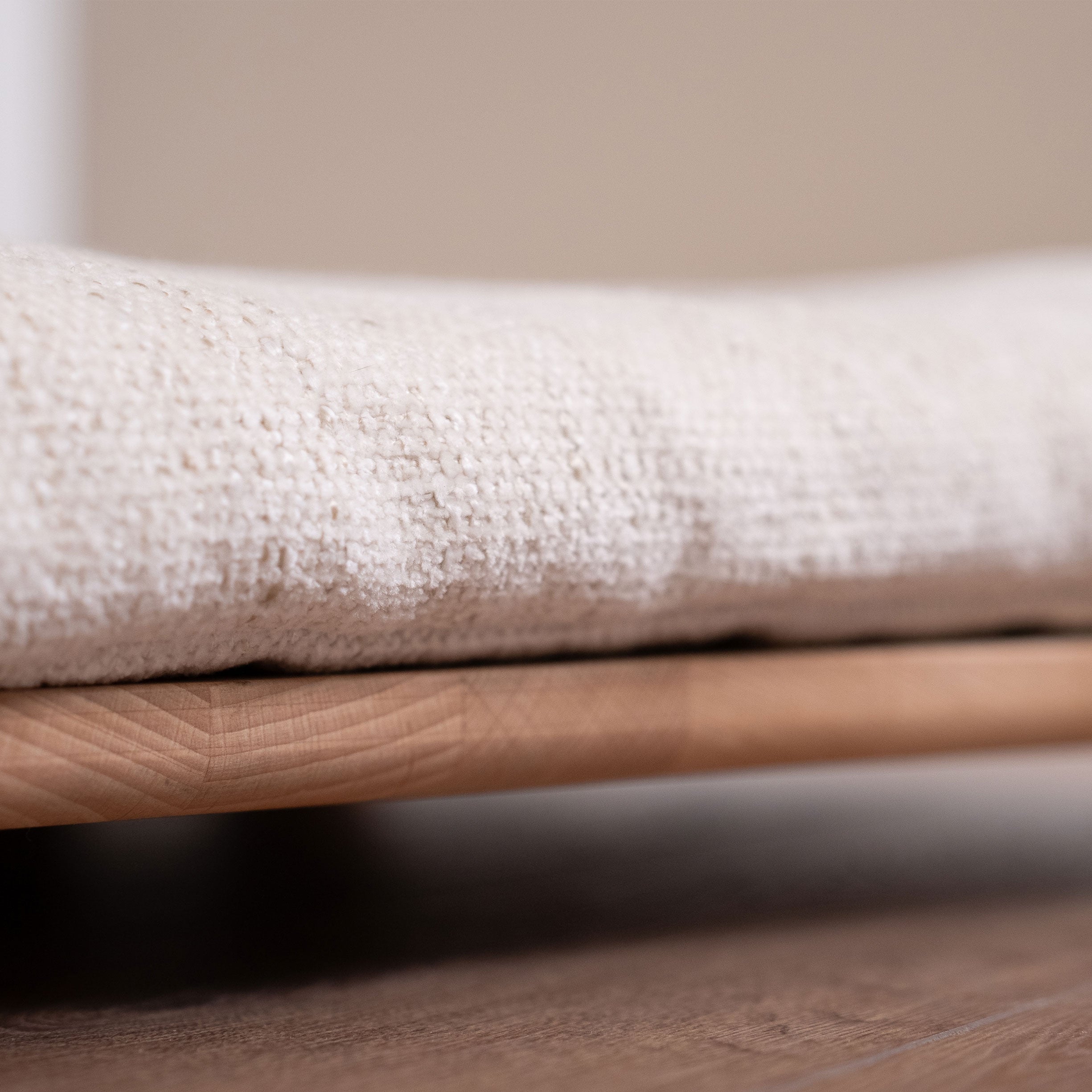 Il piano è forato e traspirante e ospita il cuscino imbottito con lana naturale, che porta ai massimi livelli l’esperienza di comfort e riposo del pet. Campero è un prodotto da indoor.