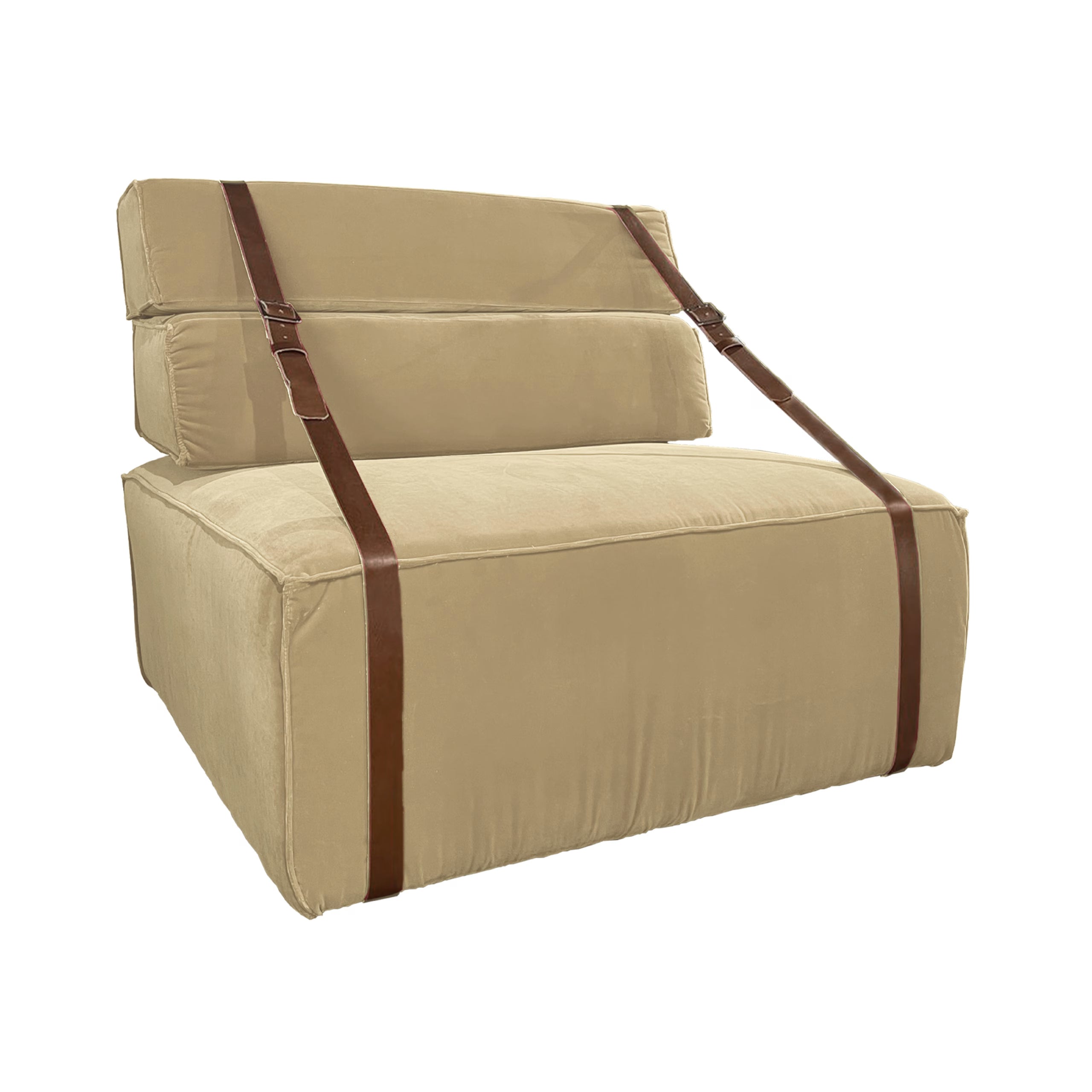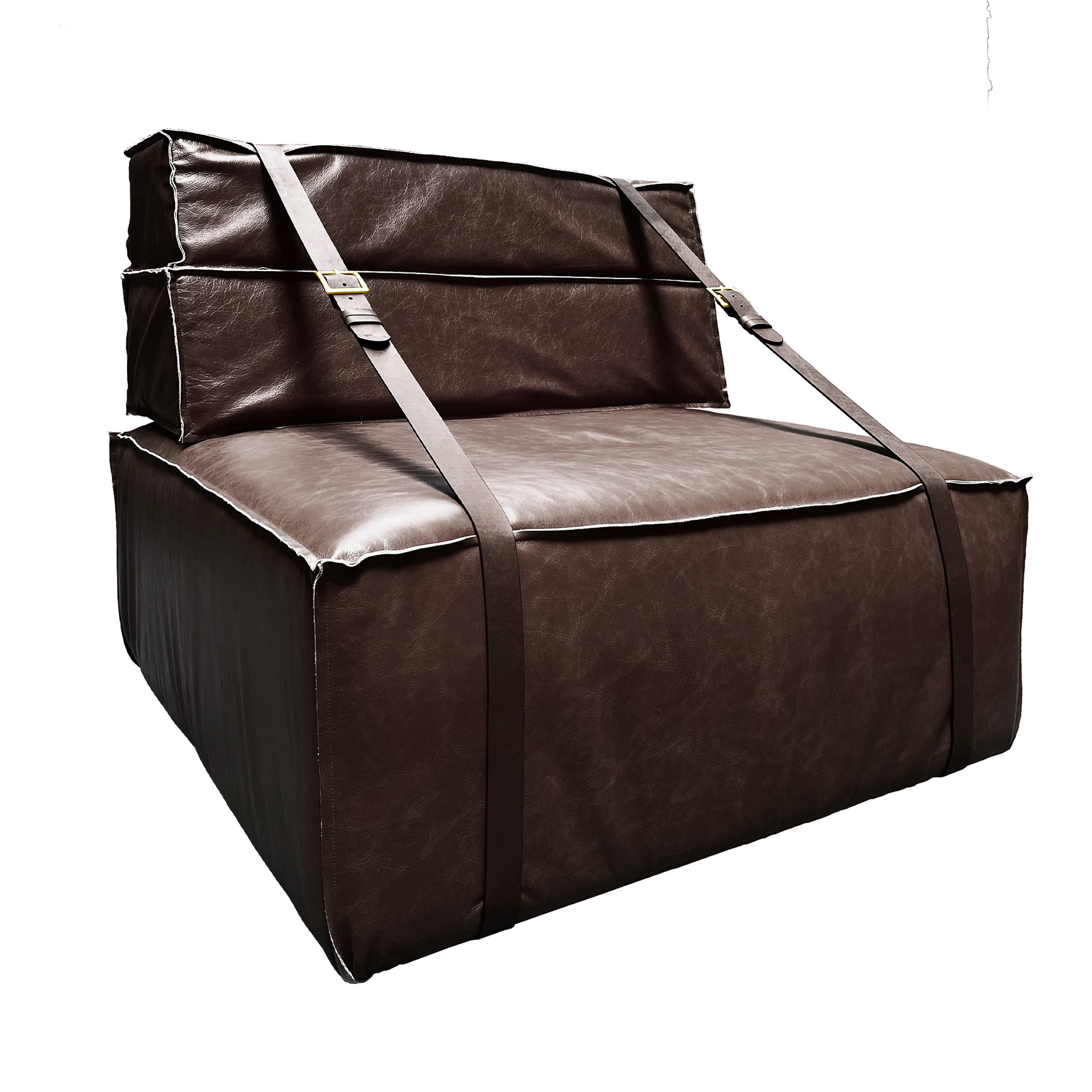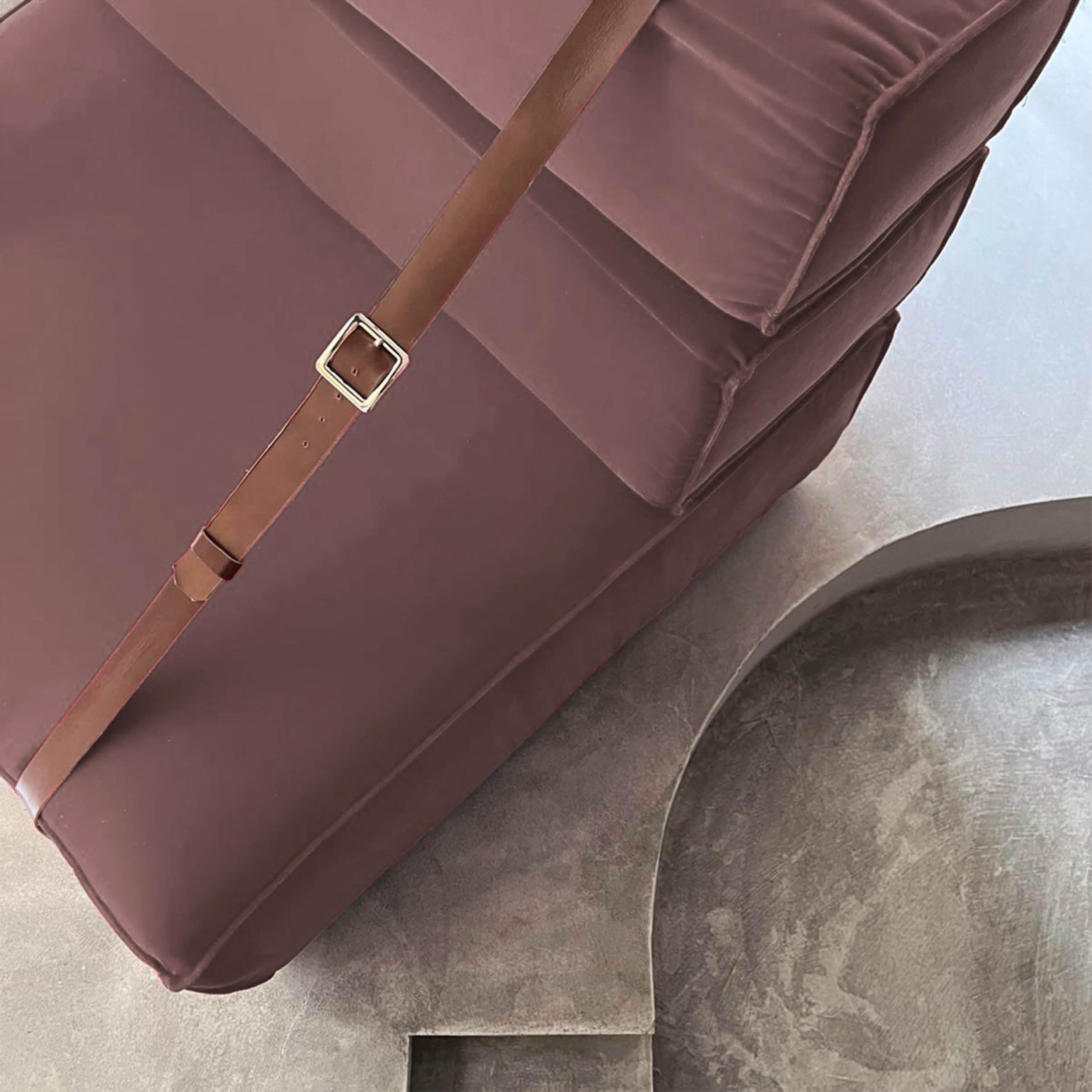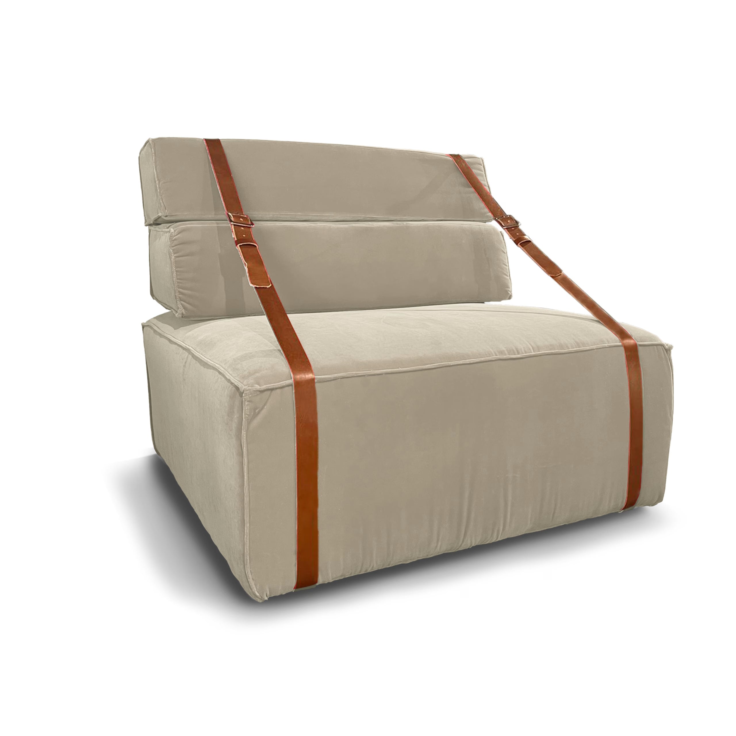 Gli imbottiti della linea “Dockers”” sono testimonianza di un’eleganza sobria, questa poltrona è definita dal tessuto in morbido velluto e dai dettagli in pelle. offrendo un’estetica calma e sofisticata. La poltrona rende omaggio ai nostalgici trasporti di merci al porto di Genova, evocando ricordi di viaggio, come i vecchi imballi trasportati a mano dai “camalli”, gli scaricatori del porto di Genova, unendo un design vintage e contemporaneo. Il suo rivestimento ecologico in “bio-cotone” ne accresce il fascino sostenibile.