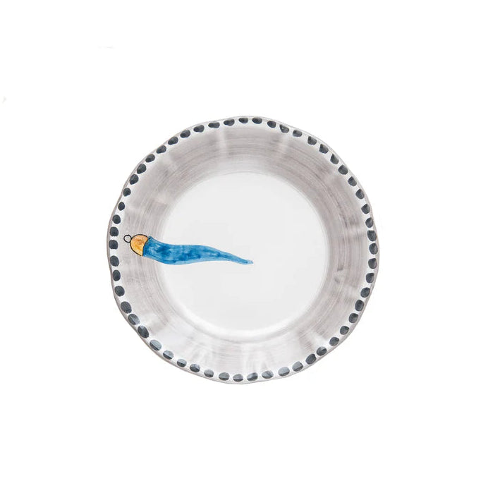 La ceramica offre consistenza e solidità, rendendo i piatti piacevoli al tatto e resistenti a un uso frequente. La decorazione manuale introduce lievi variazioni tra i pezzi, testimoniando l’intervento diretto dell’artigiano e garantendo unicità a ogni elemento.