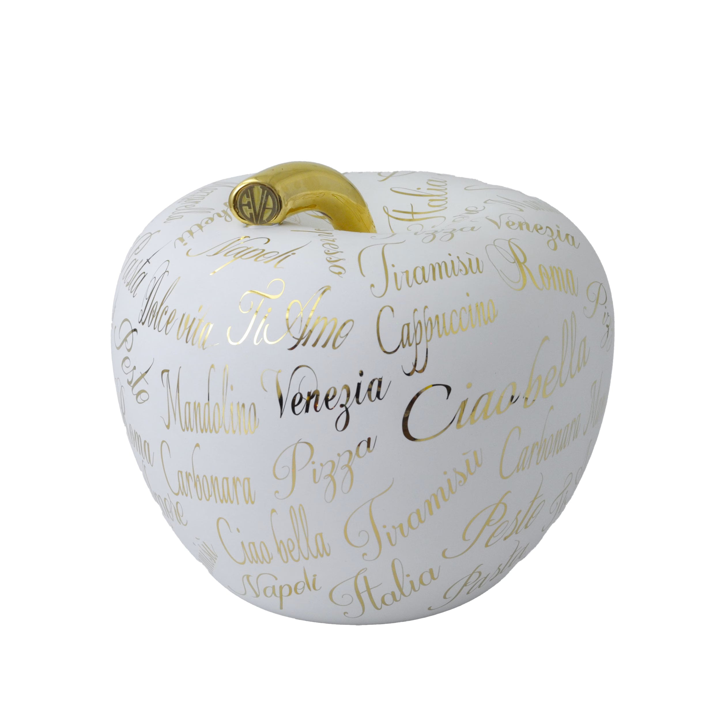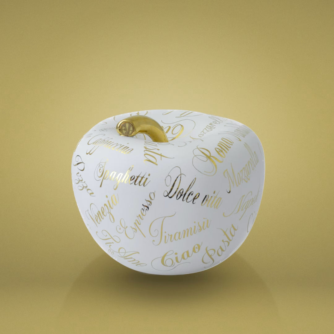 Mela decorativa Luxury Italia Oro home decor su sfondo oro vista angolata