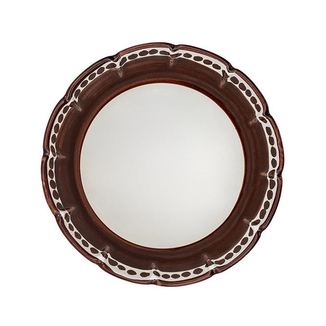 Il bordo colorato crea un contrasto armonioso con il bianco, accompagnando ogni pietanza e conferendo ritmo visivo alla tavola. La tonalità calda del marrone richiama sensazioni naturali e accoglienti, adatta a contesti informali, tavole quotidiane o momenti più curati, integrandosi con facilità in cucine moderne, rustiche o minimaliste.