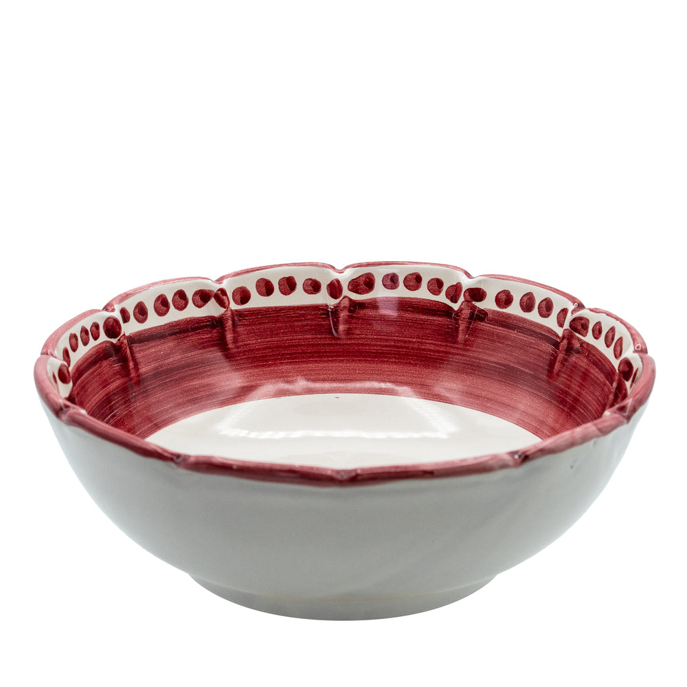 La ceramica offre consistenza e solidità, rendendo i piatti piacevoli al tatto e resistenti a un uso frequente. La decorazione manuale introduce lievi variazioni tra i pezzi, testimoniando l’intervento diretto dell’artigiano e garantendo unicità a ogni elemento.
