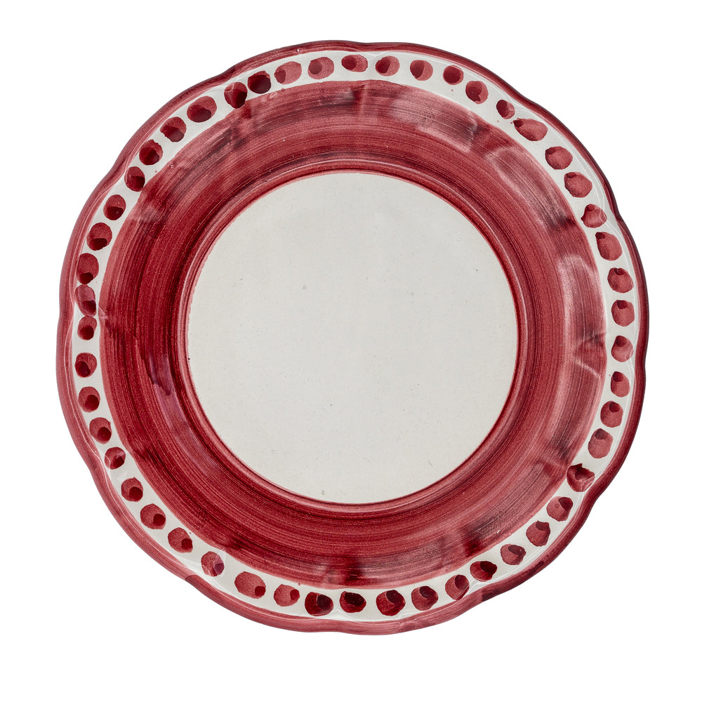 Piatto da dessert in ceramica artigianale Fortuna colore rosso