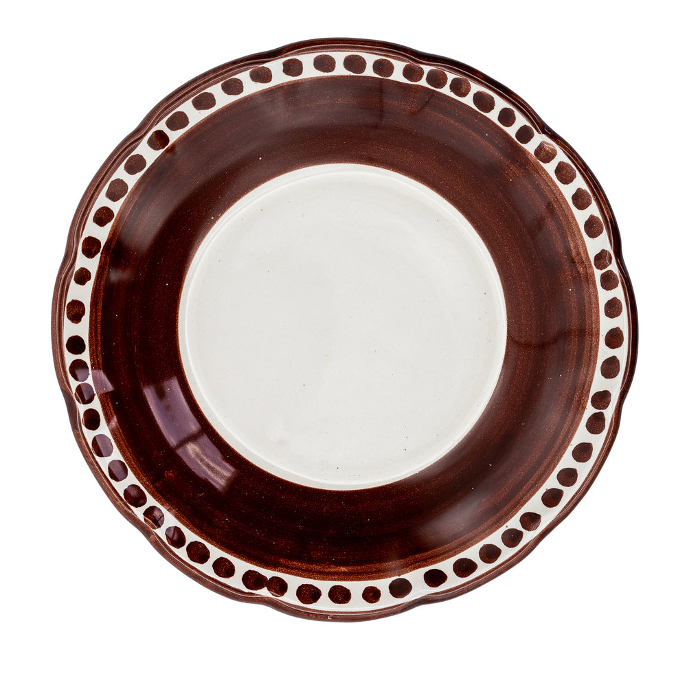 Piatto fondo I Colorati marrone, ceramica artigianale smaltata, vista dall’alto.