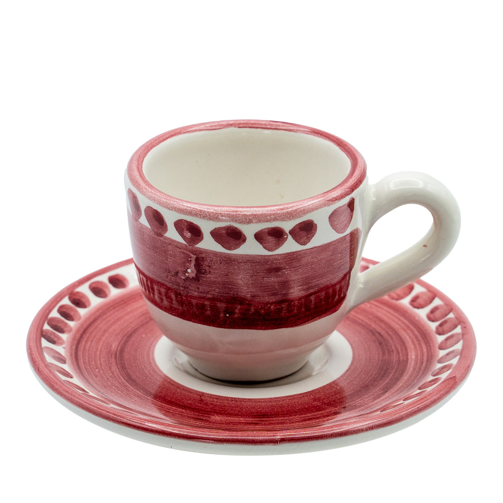 Tazzina da caffè con piattino I Colorati rosso, ceramica artigianale smaltata, vista frontale.