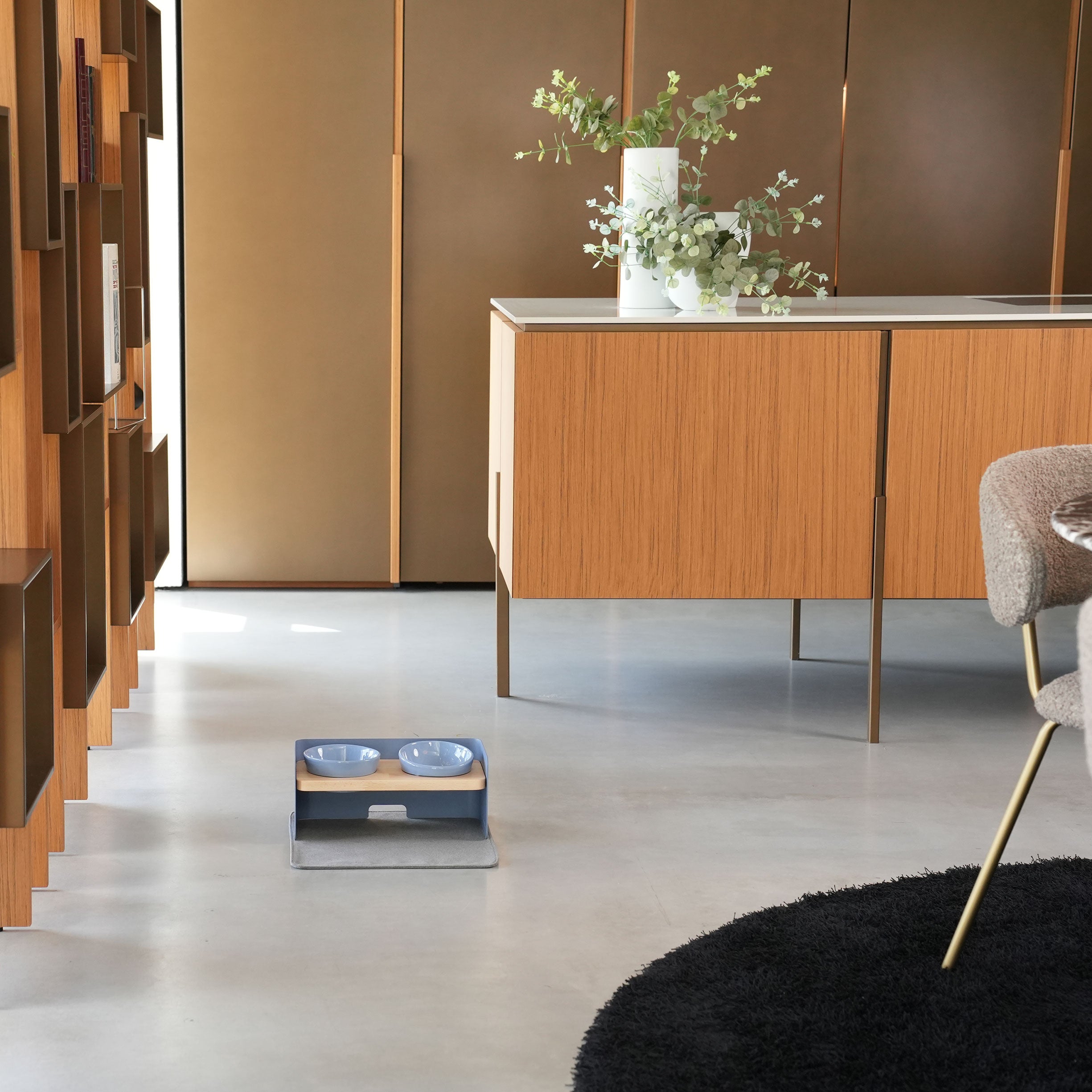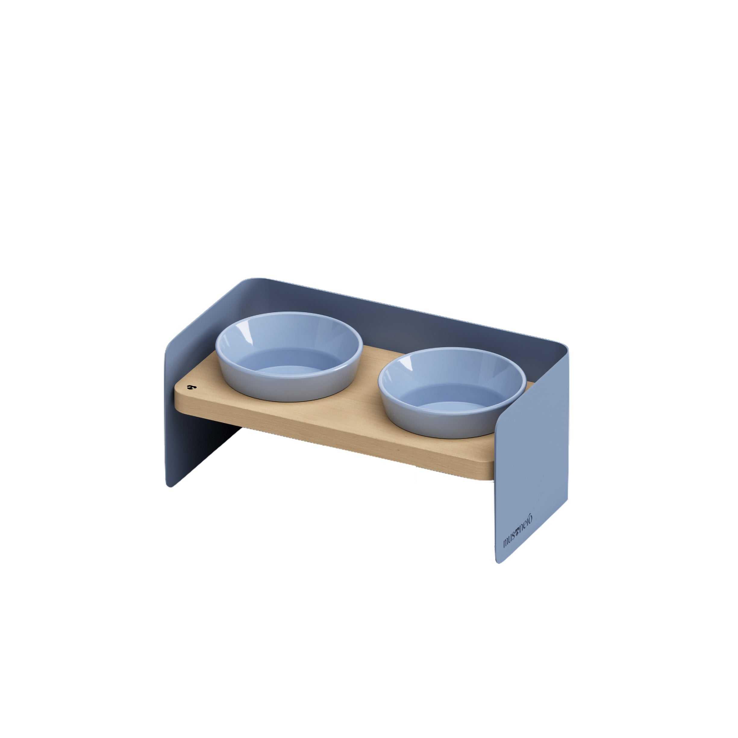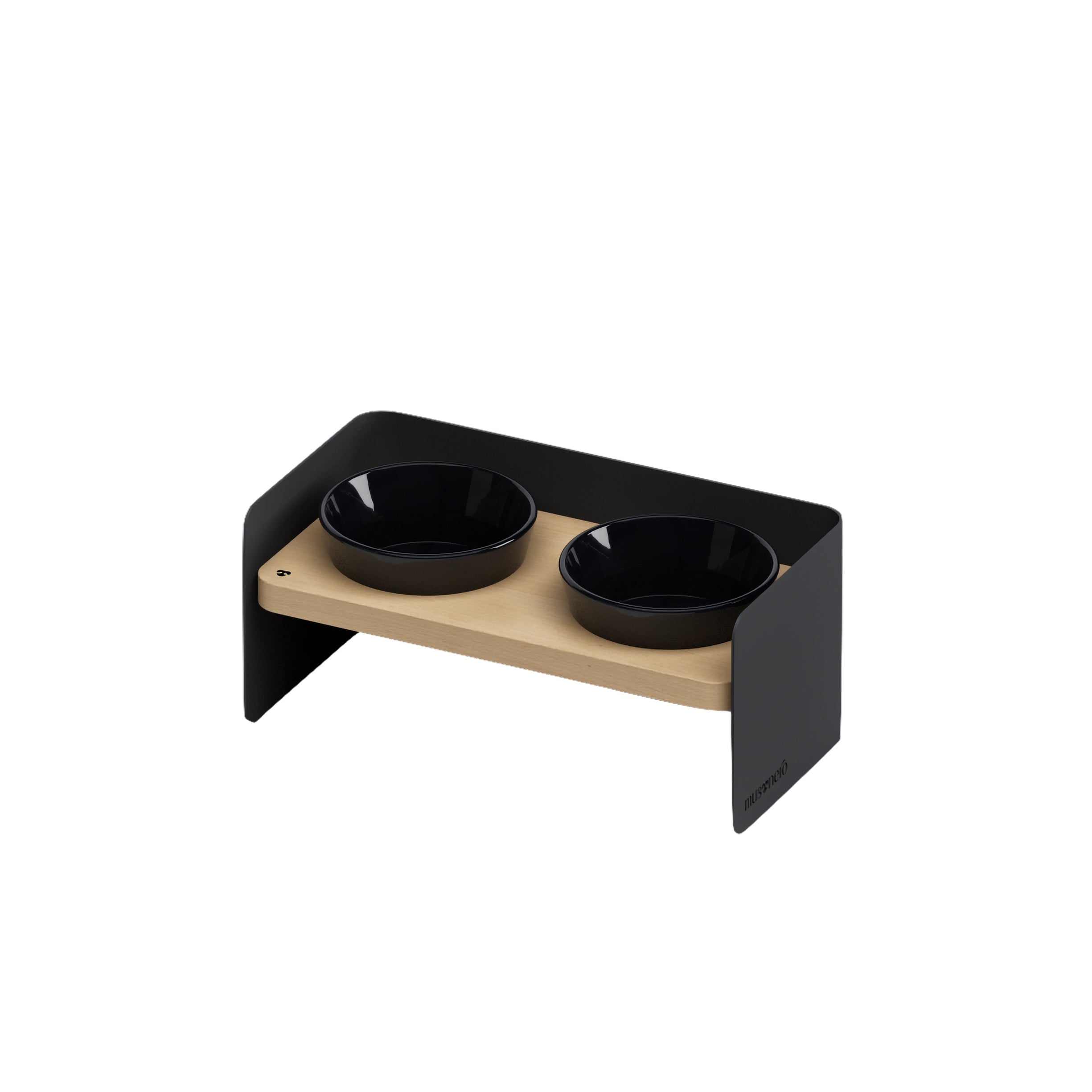 Bay Bis è un kit composto da struttura in metallo verniciato, legno di faggio e ciotoline in ceramica smaltata per i nostri amici a quattro zampe, gatti e cani, di piccola taglia