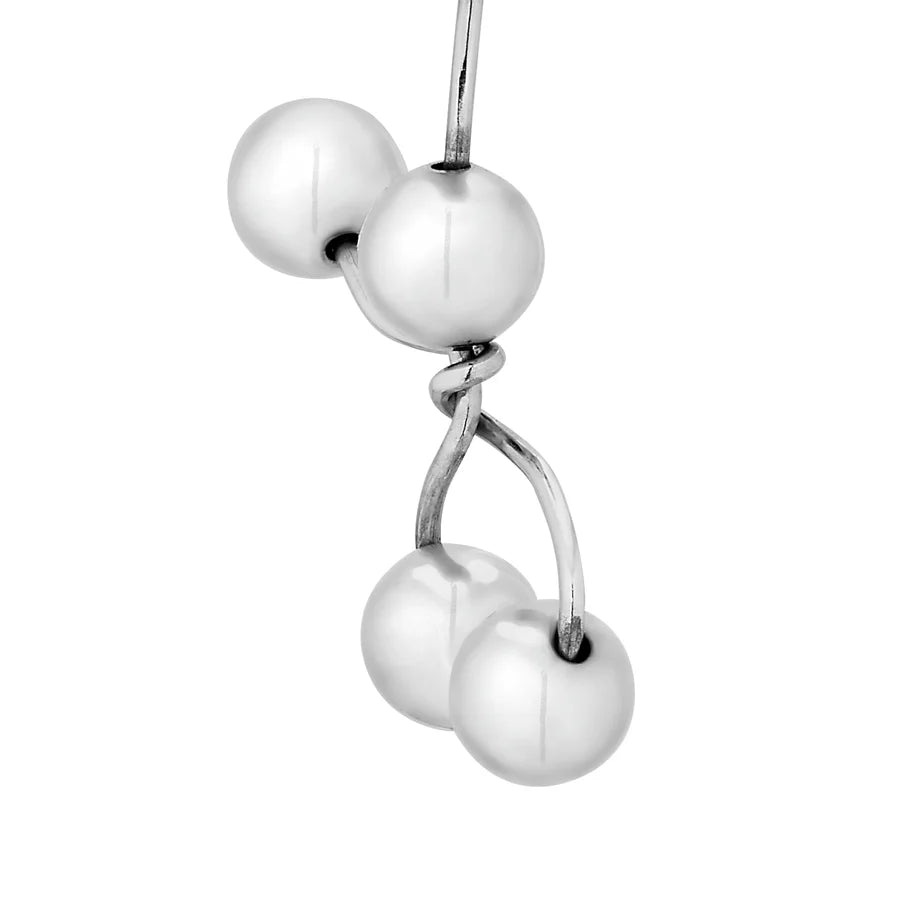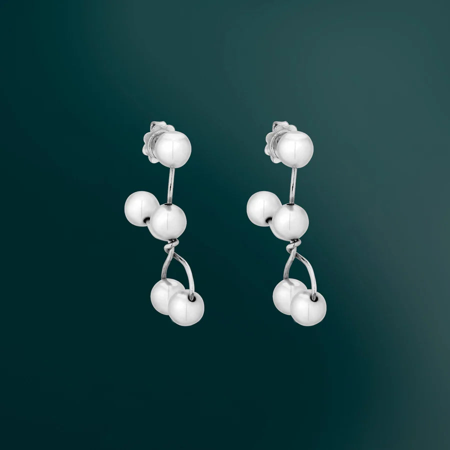 Questi orecchini, insieme alla collana, disegnati dall'architetto Tobia Scarpa per l'argentiere milanese San Lorenzo, si rifanno agli archetipi della gioielleria rinascimentale così come è giunta a noi nell'iconografia pittorica. Un sottile filo d'argento, rodiato per ovviare alla difficile manutenzione, forma un anello circolare in cui sono imprigionate piccole perle d'argento.