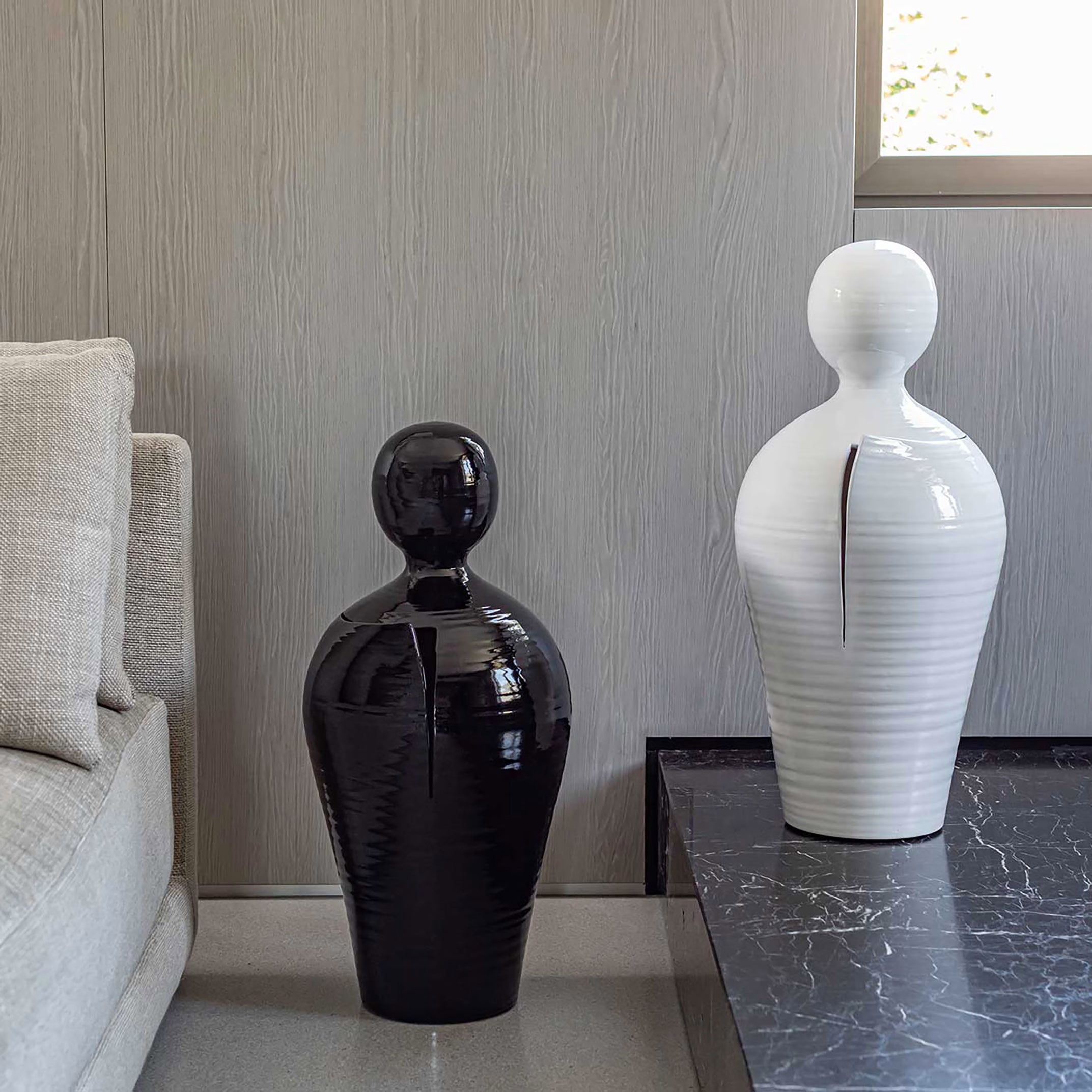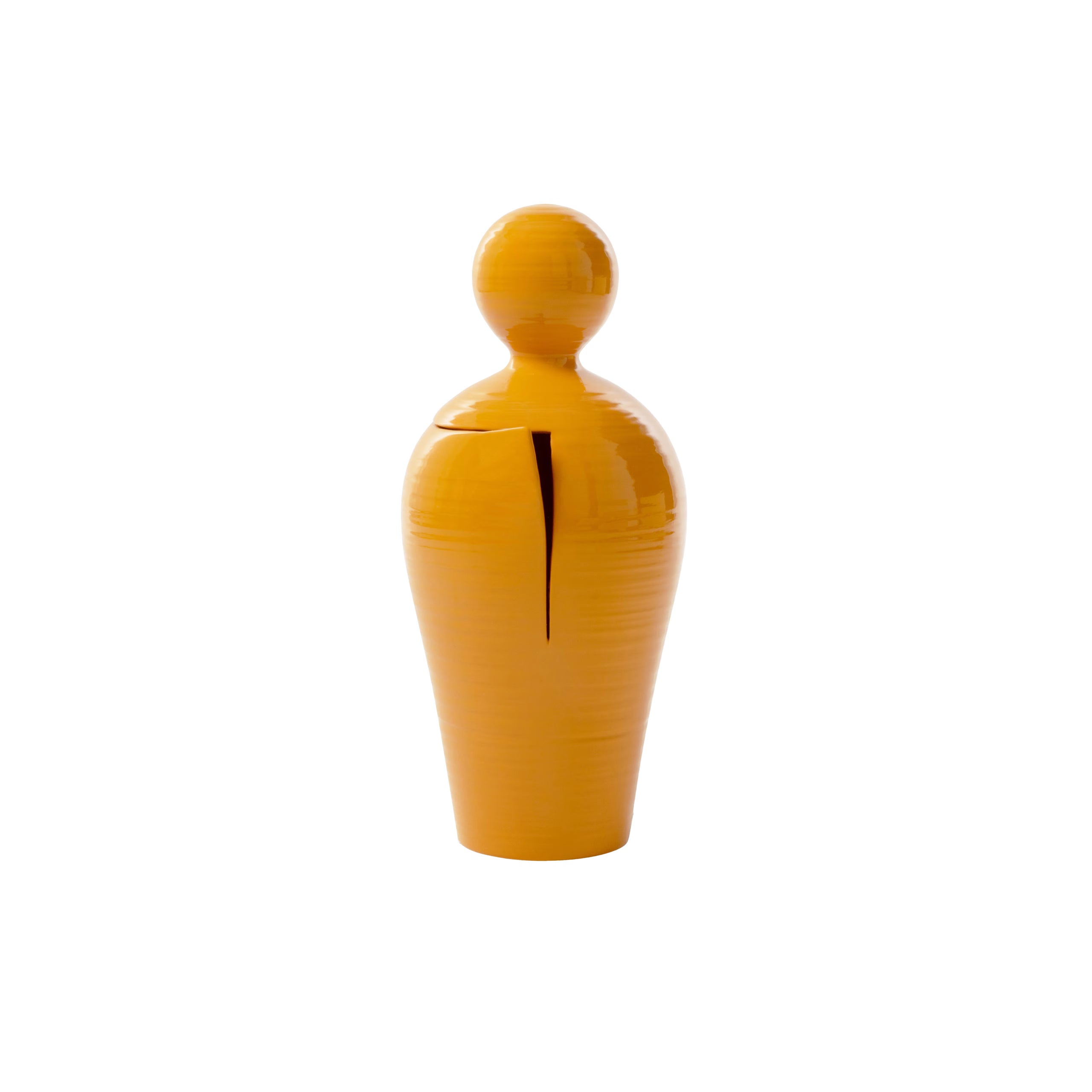 Una deliberata fessura che invita a scoprire un trionfo di sentimenti disinibiti e passionali è l’elemento che conferisce a questo singolare vaso decorativo il suo tocco poetico e metaforico. Ispirata all’intimità a fuoco lento degli amanti, la silhouette vagamente antropomorfa è qui presentata nei cinque colori vibrante disponibili, ideali per ravvivare ambienti contemporanei dai toni spenti.