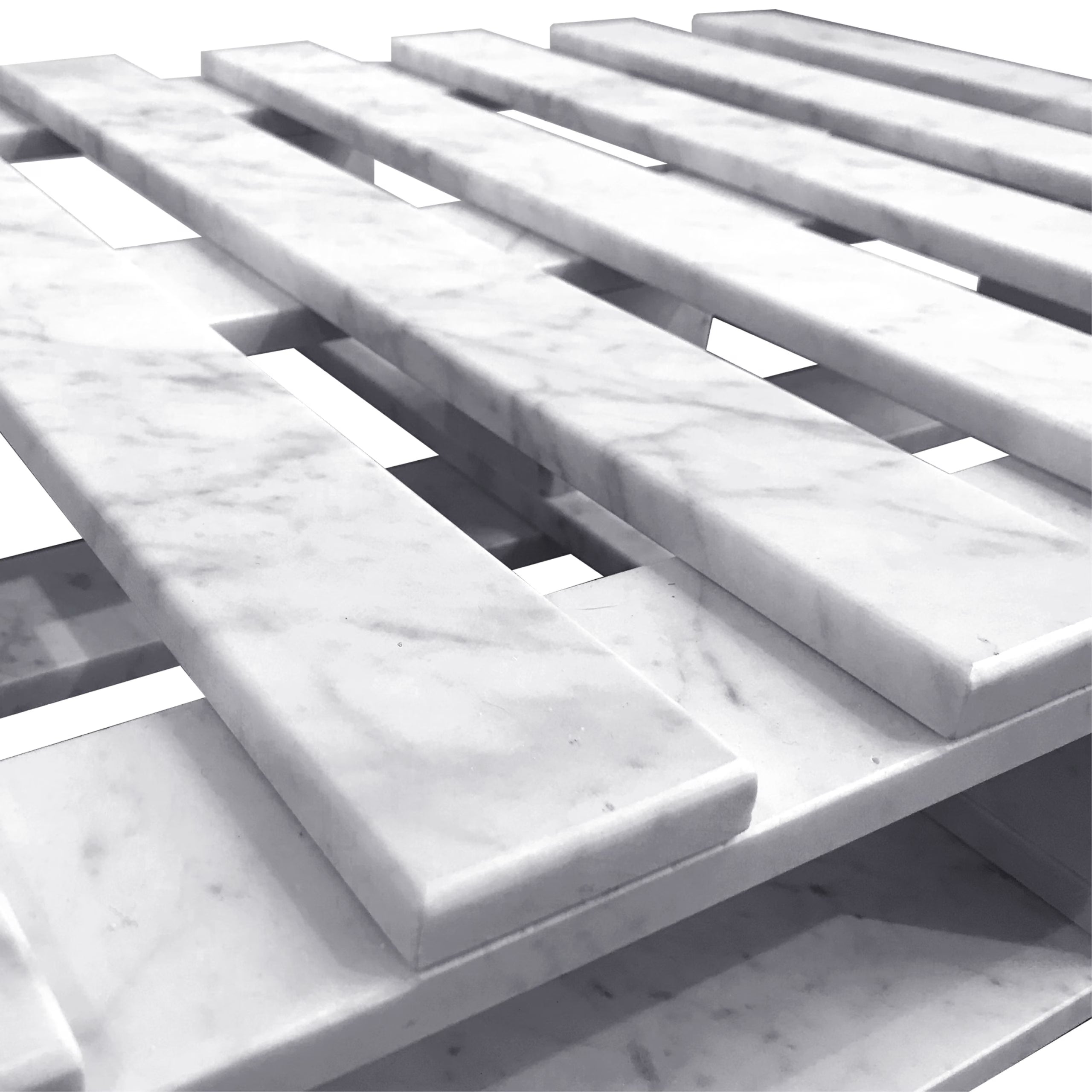 La capsule collection TELLAP, ha la finalità progettuale di reinventare l’utilizzo degli scarti di materiale provenienti alle lavorazioni del marmo, trasformandoli in complementi d’arredo. E’ la reinterpretazione di un oggetto “usa&getta” come il pallet in legno, che attraverso uno “switch” di materiale, viene realizzato in un materiale nobile, trasformandosi in un oggetto volutamente ed “inutilmente” di lusso.