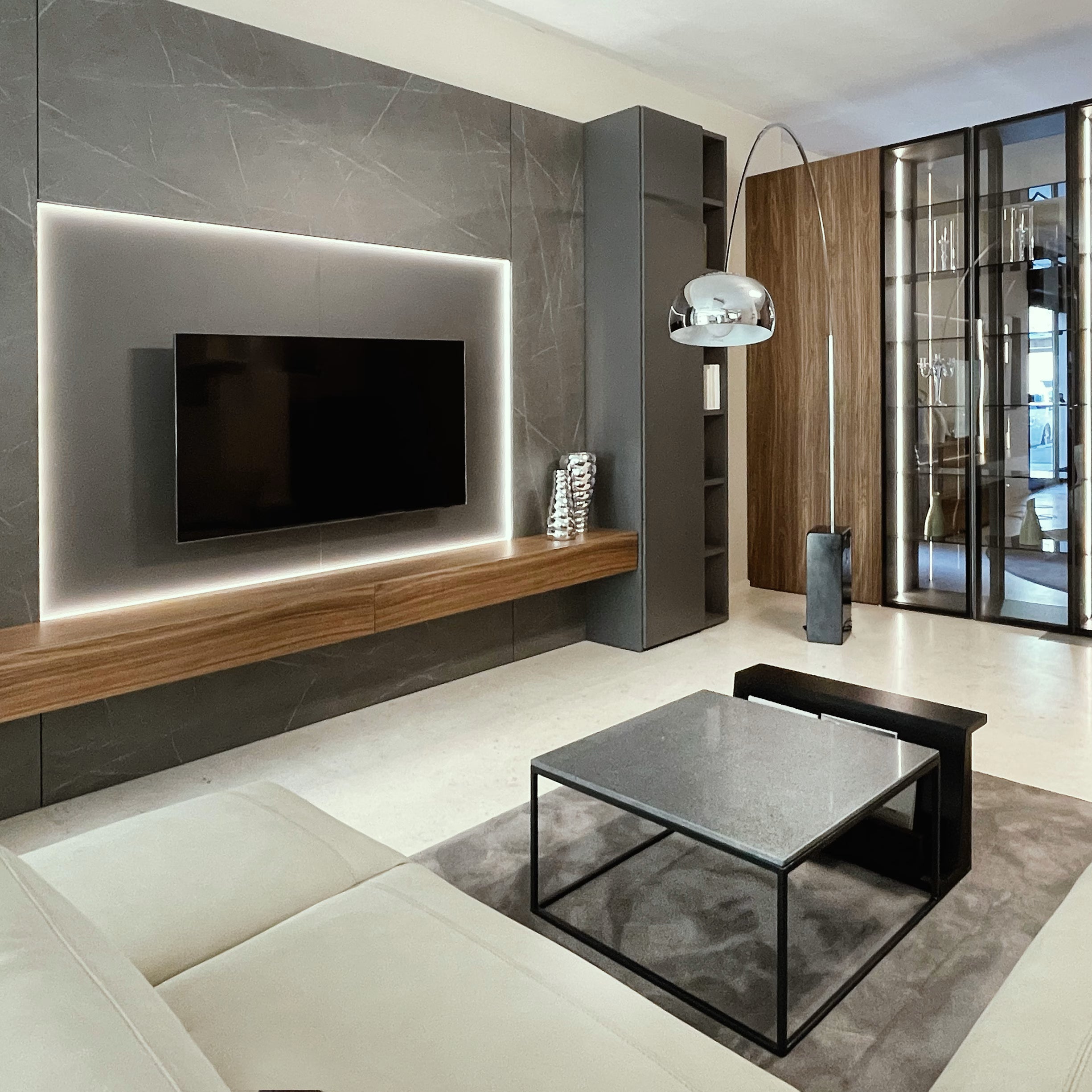 La combinazione di materiali naturali crea un equilibrio armonioso di forme, colori e texture. Le venature del legno e la superficie irregolare del marmo raccontano la bellezza autentica della materia, che prende forma attraverso una lavorazione artigianale attenta e rispettosa.