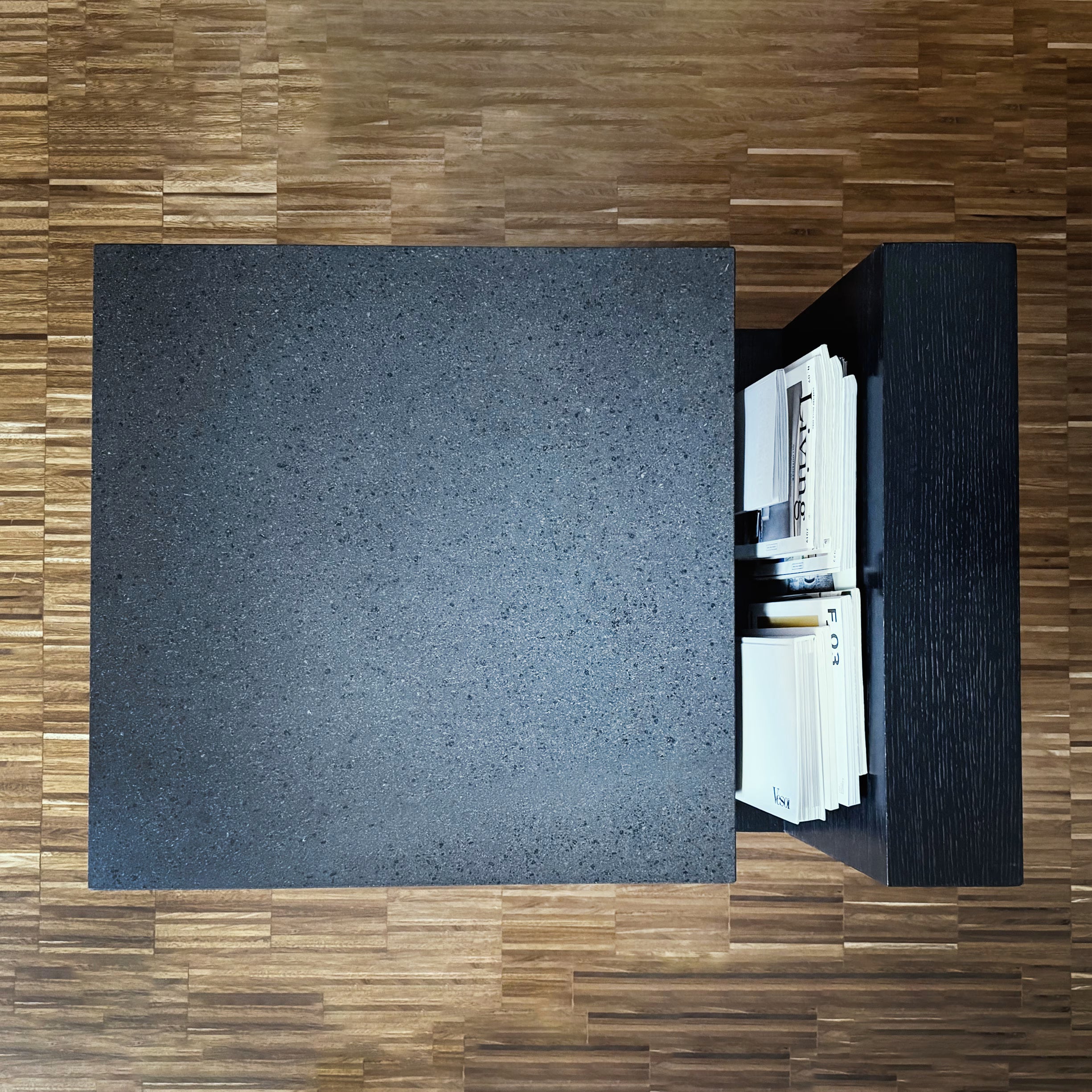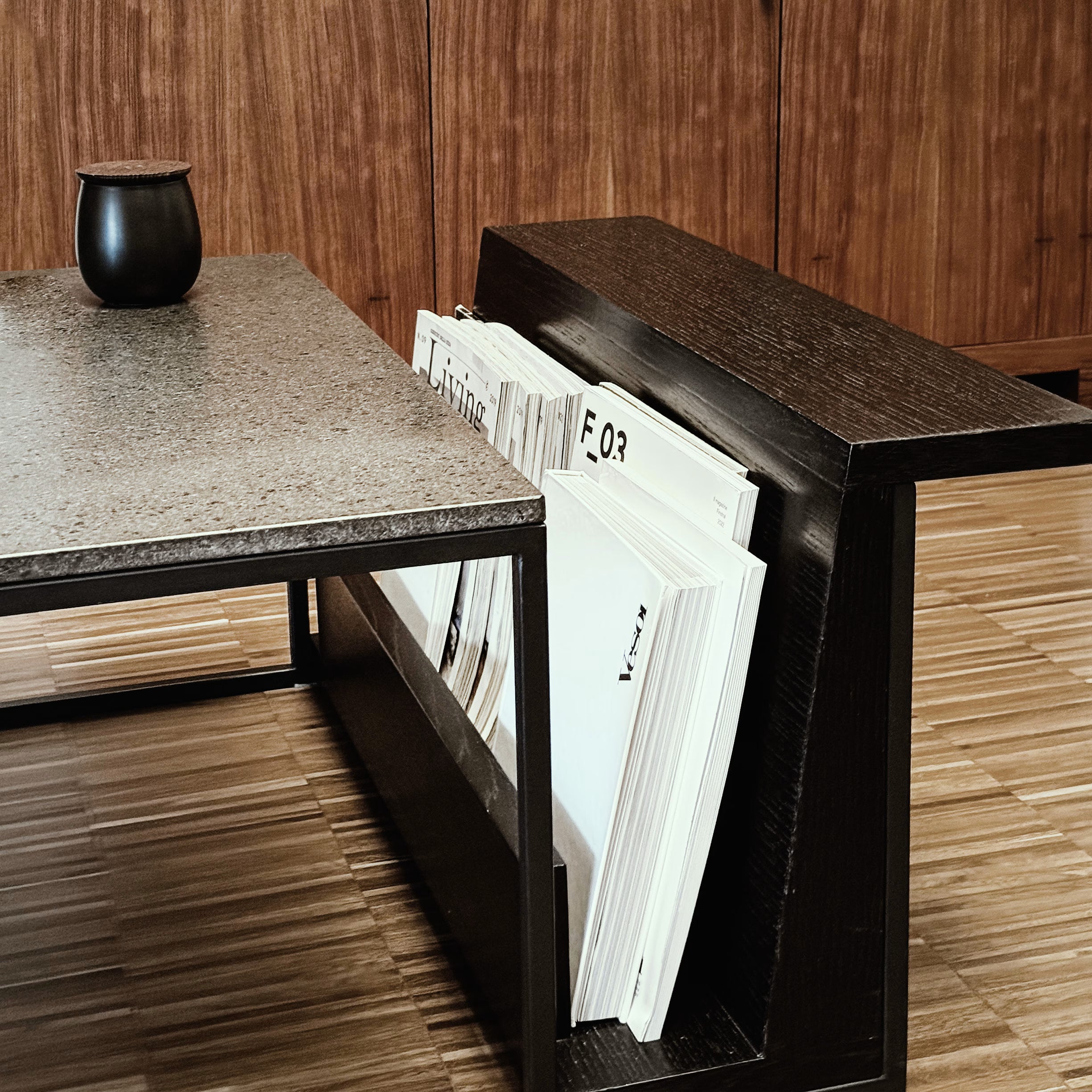 Le proporzioni sono frutto di uno studio accurato: l’inclinazione del portariviste è pensata per ospitare libri, riviste e giornali in modo stabile, senza il rischio che scivolino. Slitta è un complemento d’arredo versatile: ideale come protagonista nella zona living, si adatta perfettamente anche ad ambienti contract, come sale d’attesa in contesti office o hospitality.